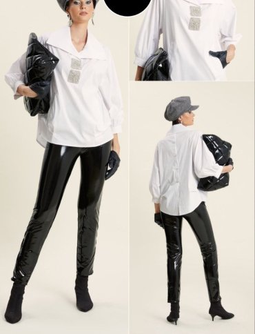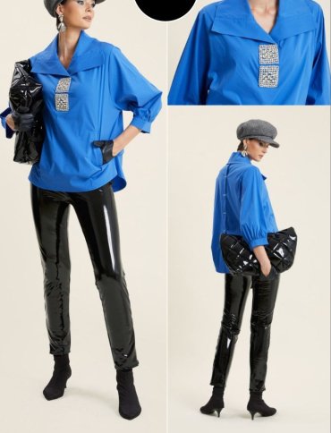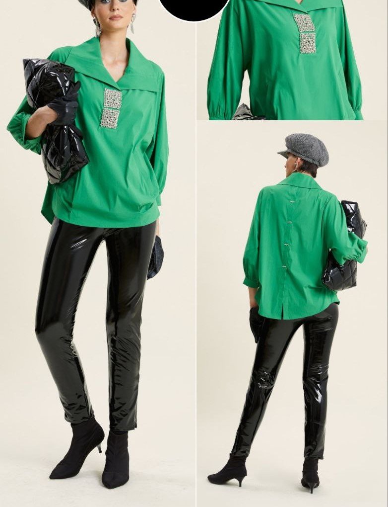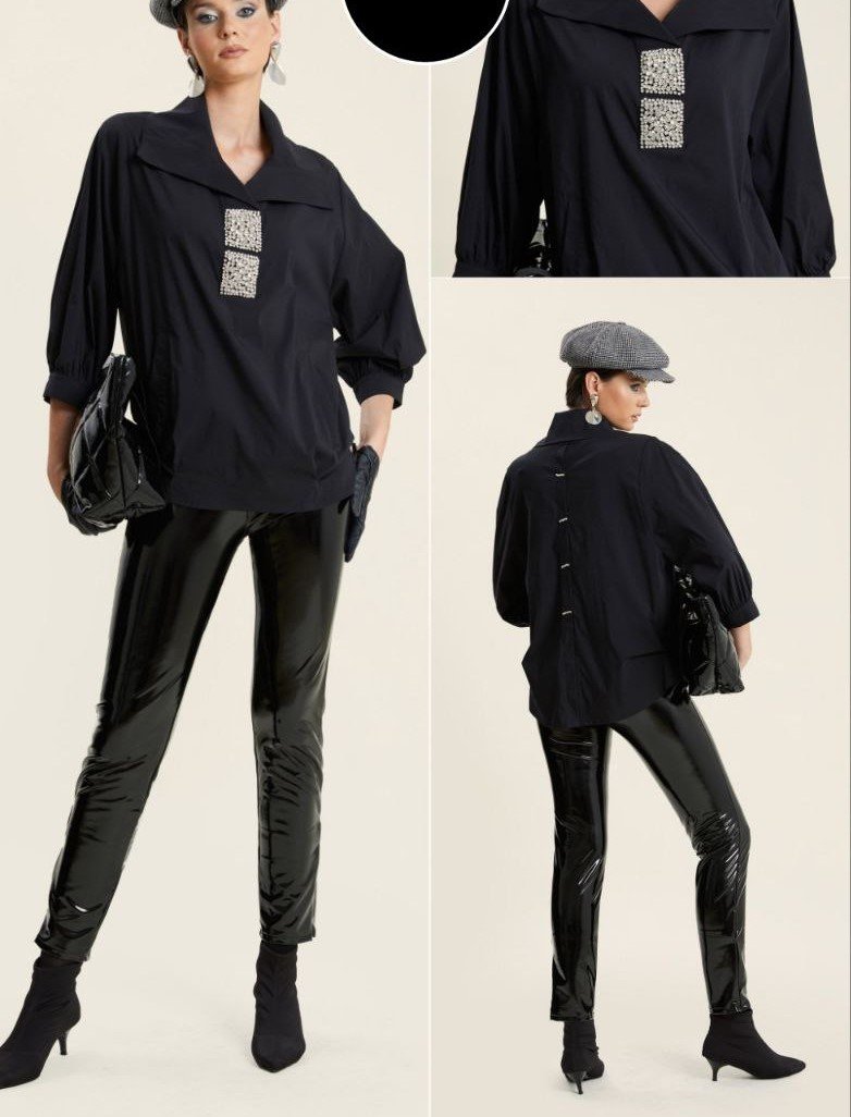 WIDE LAPEL BLOUSE WITH DIAMANTE DETAILS