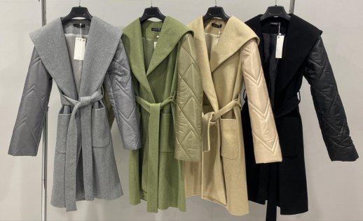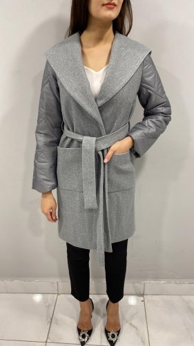 WRAP COAT WITH QUILTED SLEEVE DETAIL