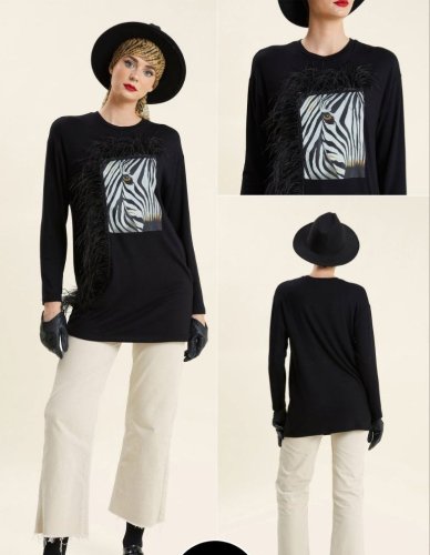 ZEBRA FEATHERED LONG T SHIRT