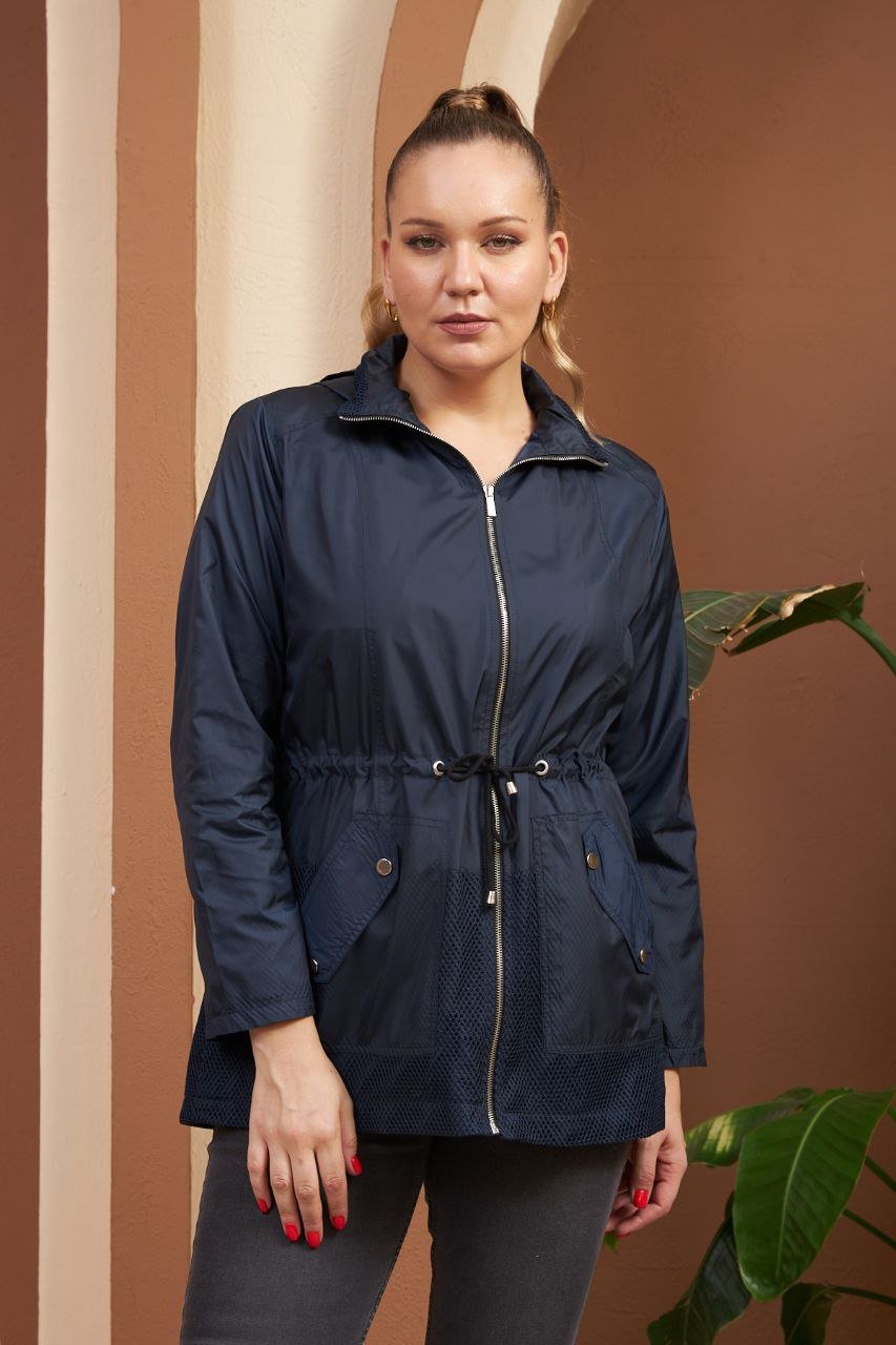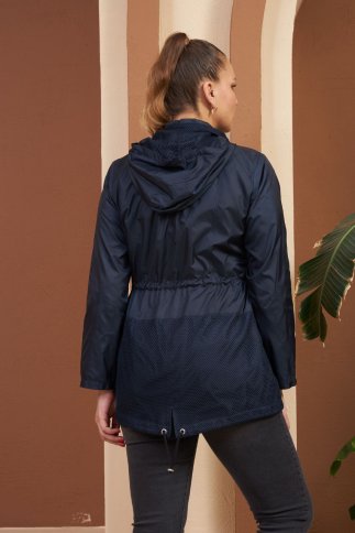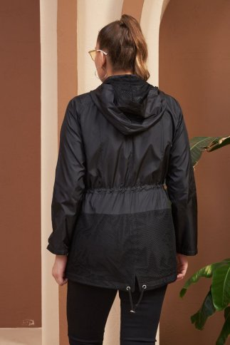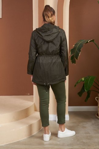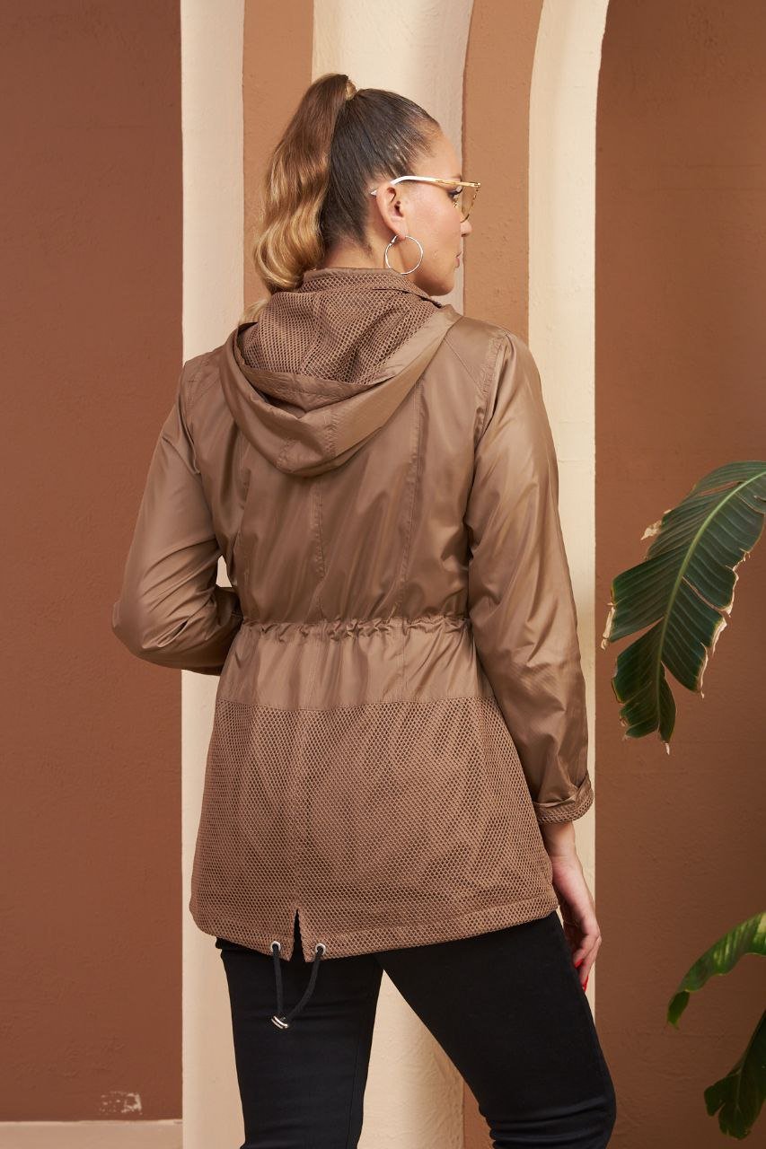 ZIPPER FRONT JACKET WITH DRAWSTRING WAIST AND SNAP DETAILS
